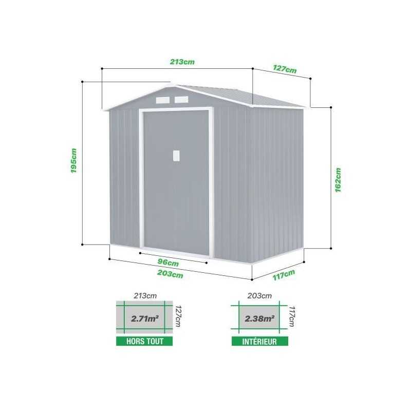Abri de jardin en métal 5,29 m² - Kit d'ancrage inclus -...