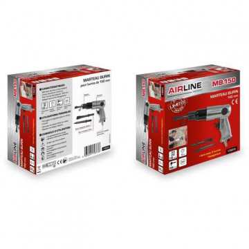 Marteau burin pneumatique livré avec 2 burins de 150mm. Idéal pour desceller carreaux, création saignée dans mur agglo, briques...Pratique, léger et maniable vs perforateur électrique. Equipé raccord rapide. 4500 coups/min. Pression utilisation : 6 bar, consommation d'air : 130L/min.