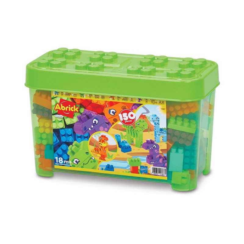 Un coffre de rangement translucide rempli de 150 pieces dont 4 dinosaures tres colorés et rigolos. Des 18 mois. Origine France Garantie