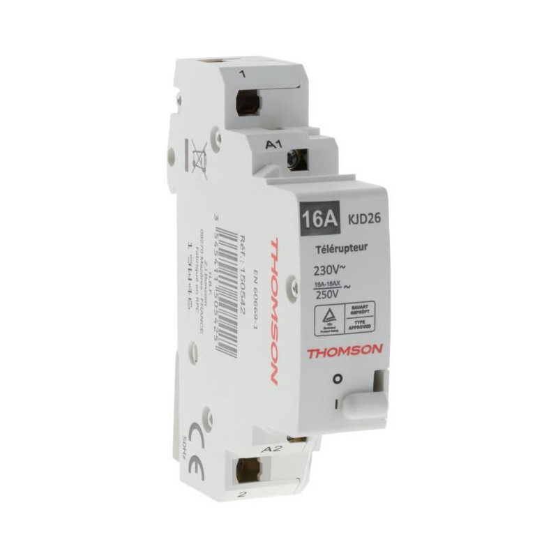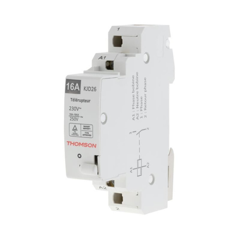 Ce télérupteur s'installe dans votre tableau électrique et permet d'utiliser différents boutons poussoir a partir de trois éclairages. Caractéristiques: Tension 250V~, Intensité 16A, Sélecteur 2 positions, Bornes a vis.