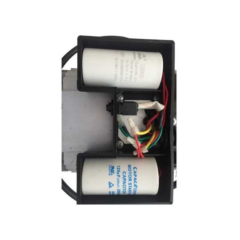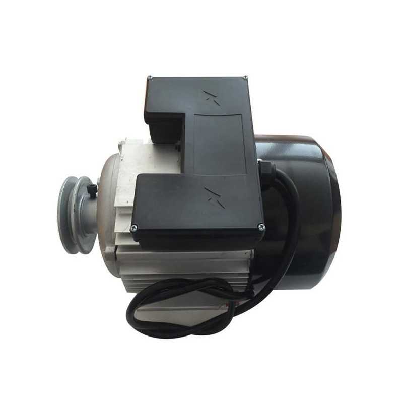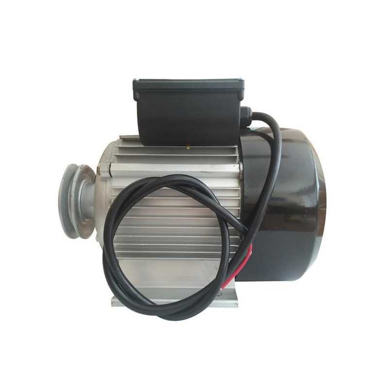 Moteur électrique 3CV/230V. Vitesse 2750tr/mn. Livré avec poulie gorge 68mm. Diametre arbre 19mm pour courroie trapezoidale 13mm. Poulie 95mm a l'extérieur. Largeur max de la couroie 13mm. Disjoncteur thermique et bouton remise en route. condensateur + clavette. Distance entre les trous de fixations 140mm(L) et 110mm(l). condensateurs + clavette. Distance entre les trous de fixations 140mm(L) et 110mm(l).