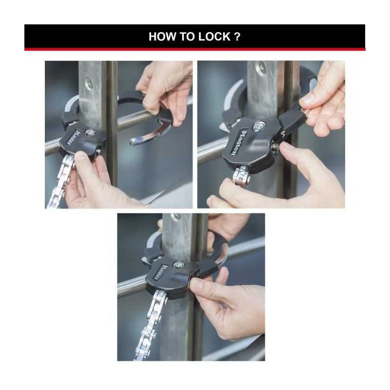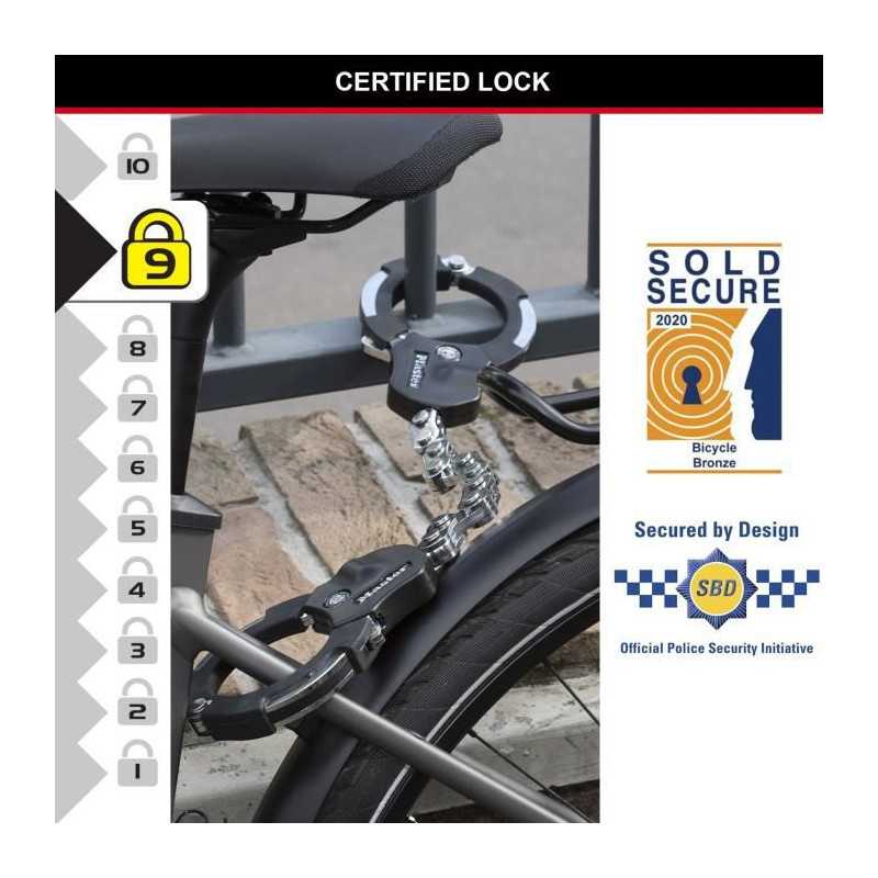Menottes antivol 9 maillons MASTERLOCK - Idéal pour les vélos, trottinettes et poussettes - Noir