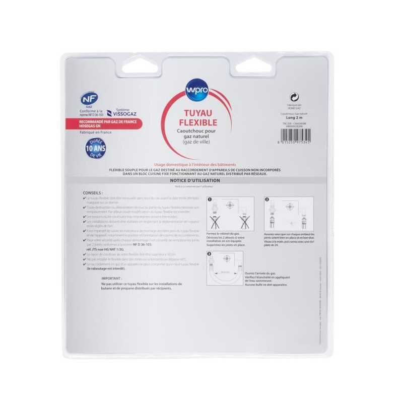 WPRO TNC200 - Tuyaux de Gaz caoutchouc naturel pour plaques de cuisson - Gaz naturel - 2m