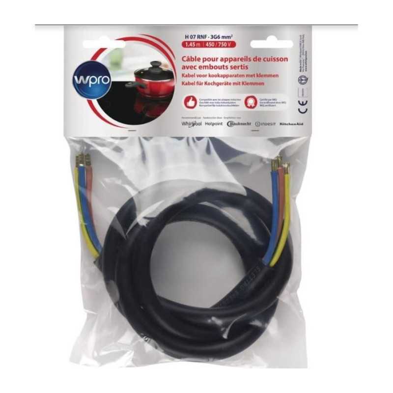 WPRO - Câble Electrique sans prise - Cable H07 RNF 3G6 - Longueur 1.45m pour appareil de cuisson > 5750 Watts compatible pour tous les appareils de cuisson (plaques induction et vitrocéramique)