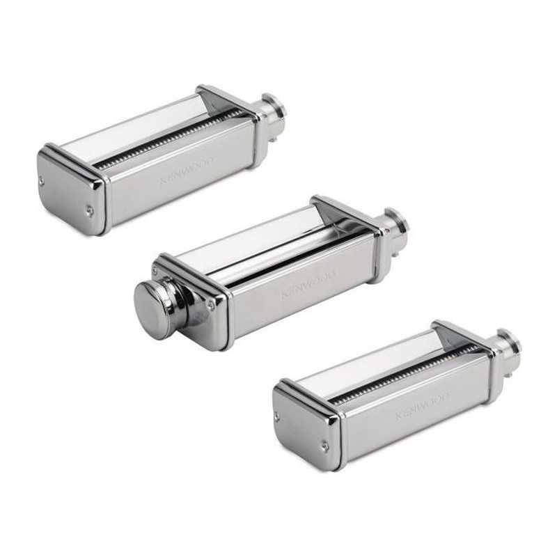 KENWOOD Kit Pasta Expert - Ce kit comprend : 1 laminoir a pâtes KAX980ME, 1 filiere fettucine KAX981ME et 1 filiere spaghetti KAX984ME - Matiere : acier inoxydable - Compatibles robots Kmix, Chef et Chef XL - Permet de réaliser lasagnes, cannellonis, ravioles, et des feuilles de pâte pour réaliser des fettuccines et spaghetti.
