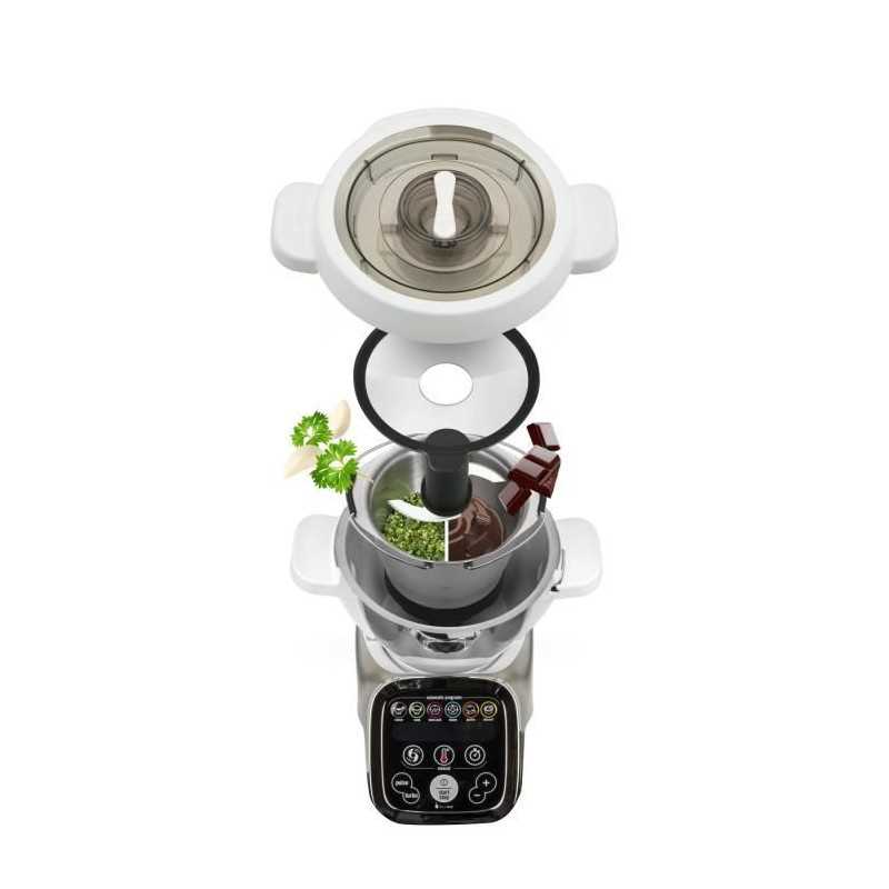 Mini Bol de cuisson 1,4L pour Robot Cuiseur Companion - Cuisson bain marie - Lames en Inox - Compatible lave vaisselle - Couvercle en verre, bol en inox et poignées avec revetement en silicone - livre de 4 recettes inclus
