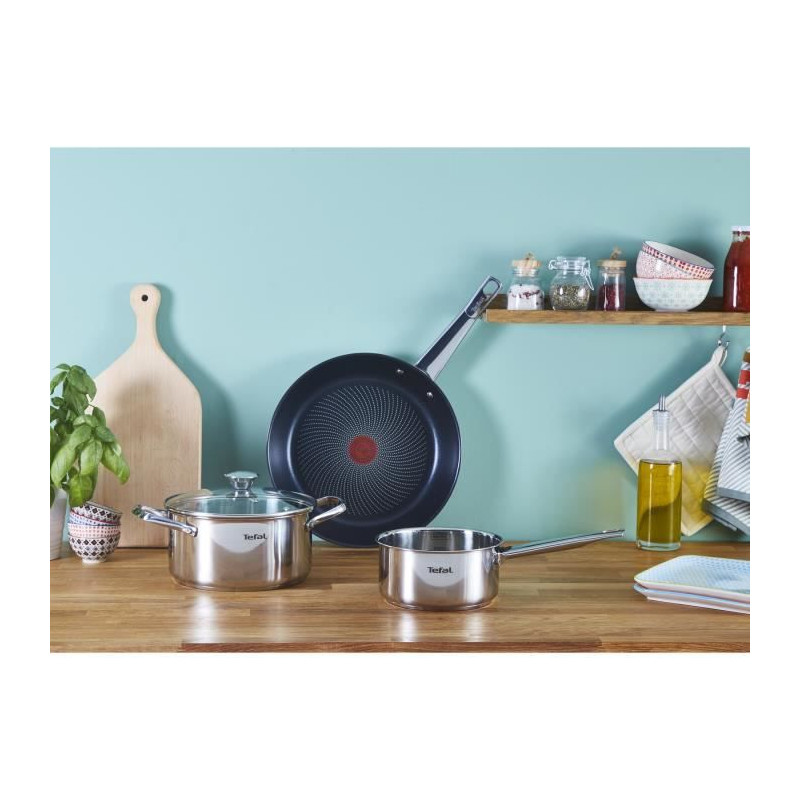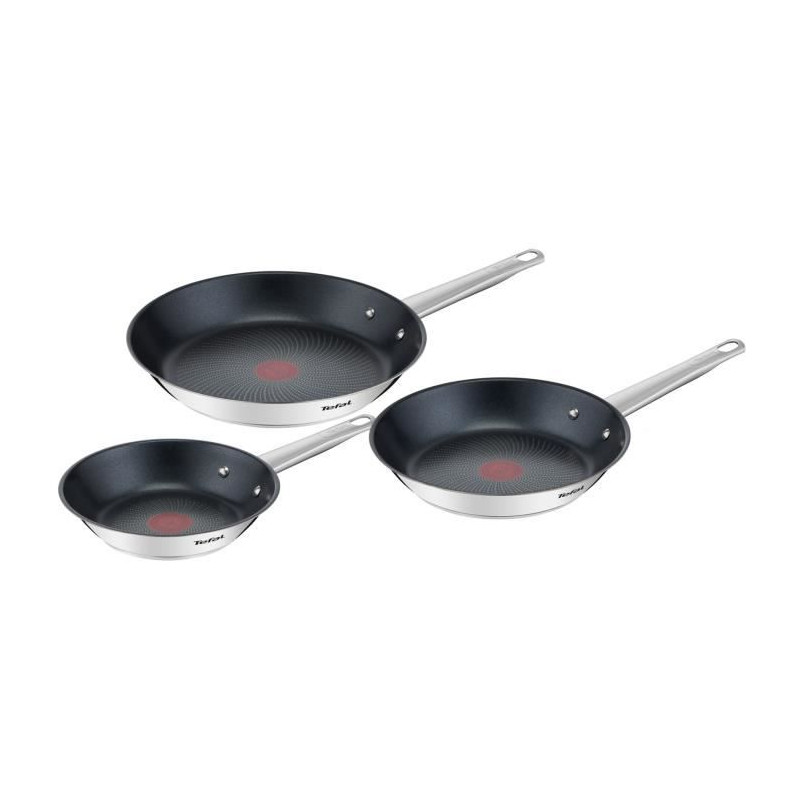 TEFAL B922S304 Lot de 3 poeles 20/24/28 cm, Induction, Acier inoxydable haute qualité, Revetement antiadhésif sûr, Cook Eat, Ino