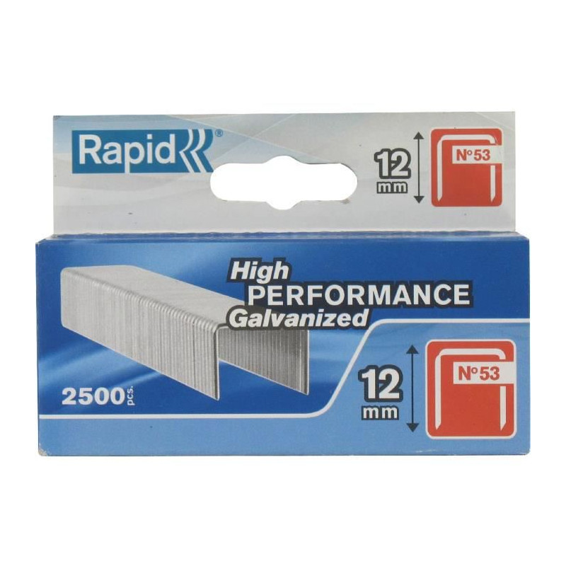 RAPID Agrafes N°53/12 en fil fin. Boîte de 2500 pcs. Agrafes de qualité galvanisées en fil tres fin, parfaites pour les travaux de fixation de textiles. Conçues pour etre le moins visible possible, et pour ne pas abîmer les fibres du tissu.