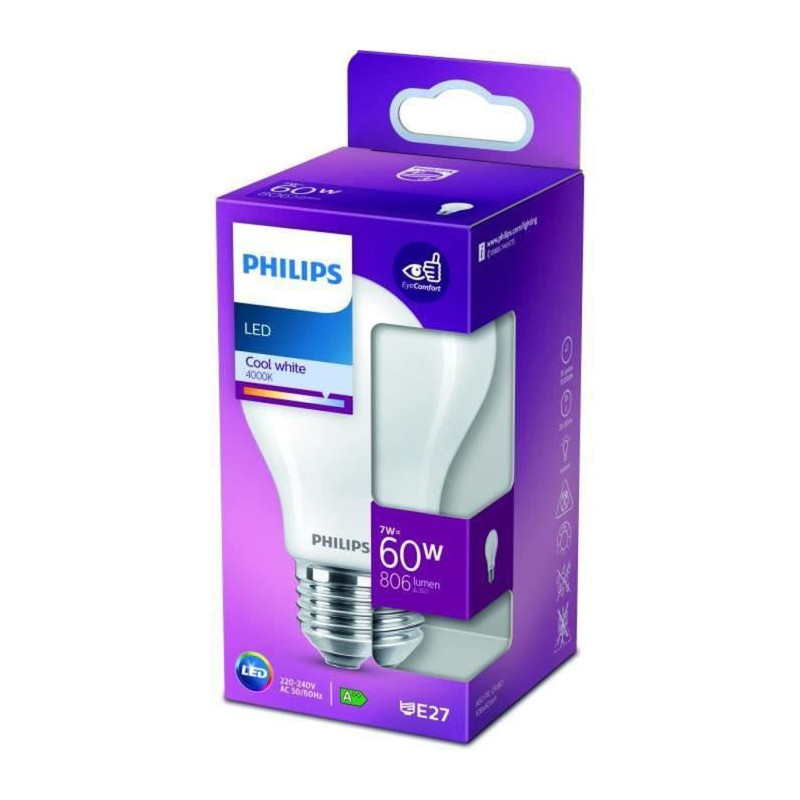 Ampoule standard LED PHILIPS Non dimmable - E27 - 60W - Blanc Froid