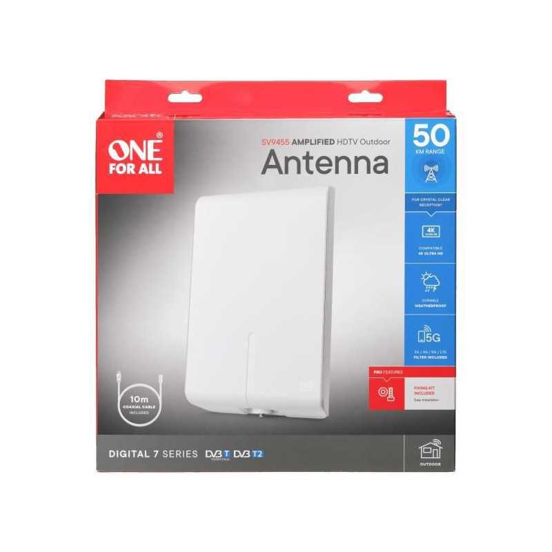 One For All - Antenne extérieure SV9455 - Zone de signal : Tres faible (0-50km / 0-30mi) - 100% étanche - Filtre 5G