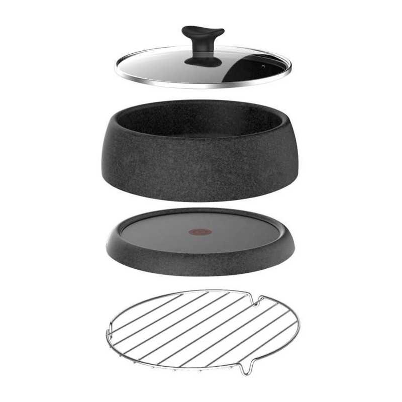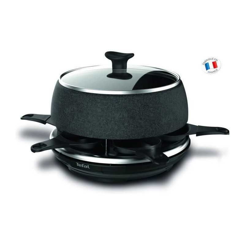 TEFAL RE12C812 Raclette Cheese N'Co - 6 personnes - Noir - Tous vos plats au fromage : 6 fonctions pour de délicieuses recettes a partager : raclette, pommes de terre au fromage, fondue, tartiflette, boîte chaude et crepe au fromage - Capacité 6 personnes - Compact - Revetement anti-adhésif - Livre de recettes inclus