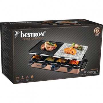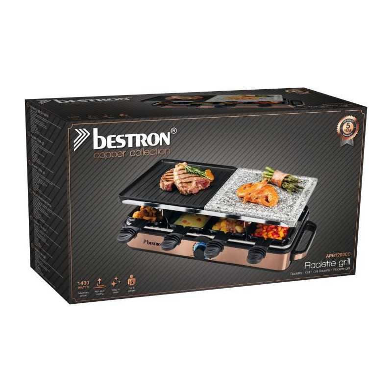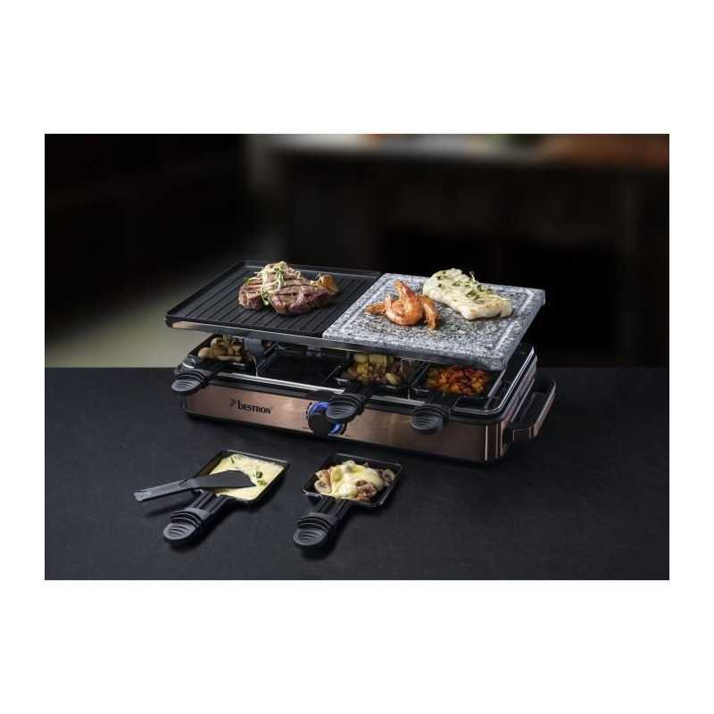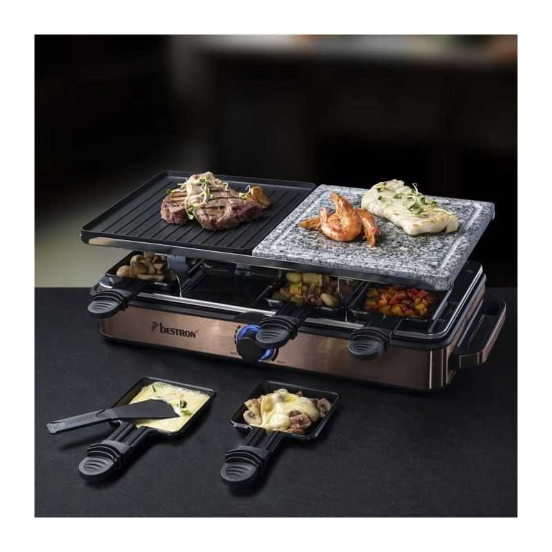 Bestron Appareil a raclette-grill Raclette électrique jusqu'a 8 personnes, 8 poelons et 8 racloirs, 1400 Watts, Couleur: cuivre