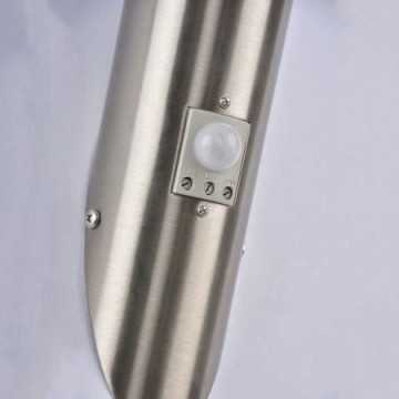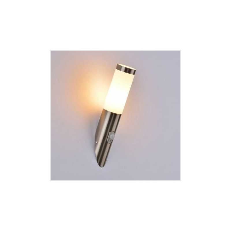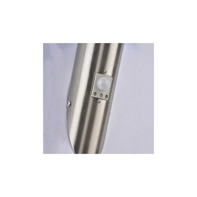 Applique forme flambeau en acier inoxydable. Equip‚e d'un d‚tecteur de pr‚sence. Coloris : nickel bross‚. IP44. D7,60cm - H40,80cm. IP44. Classe 1. E27-20W.