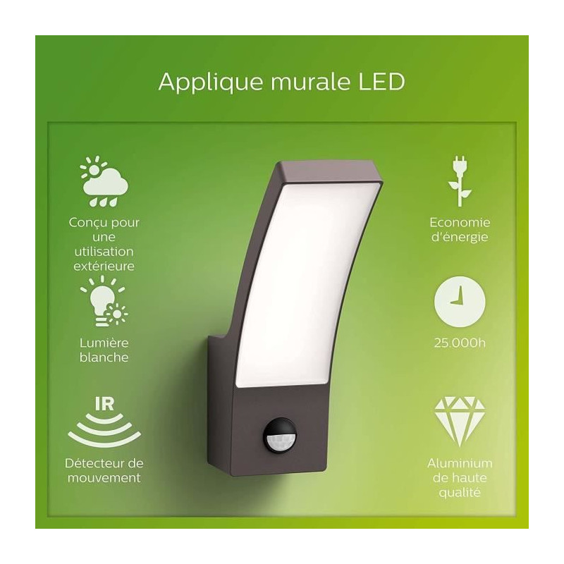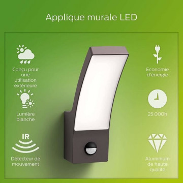 Applique extérieure avec détecteur LEIGH couleur acier...