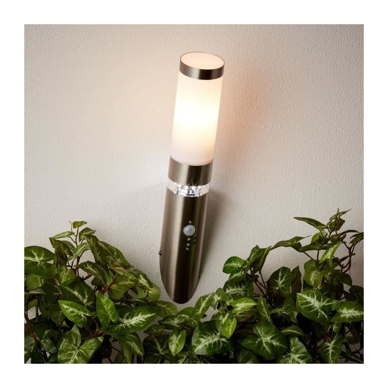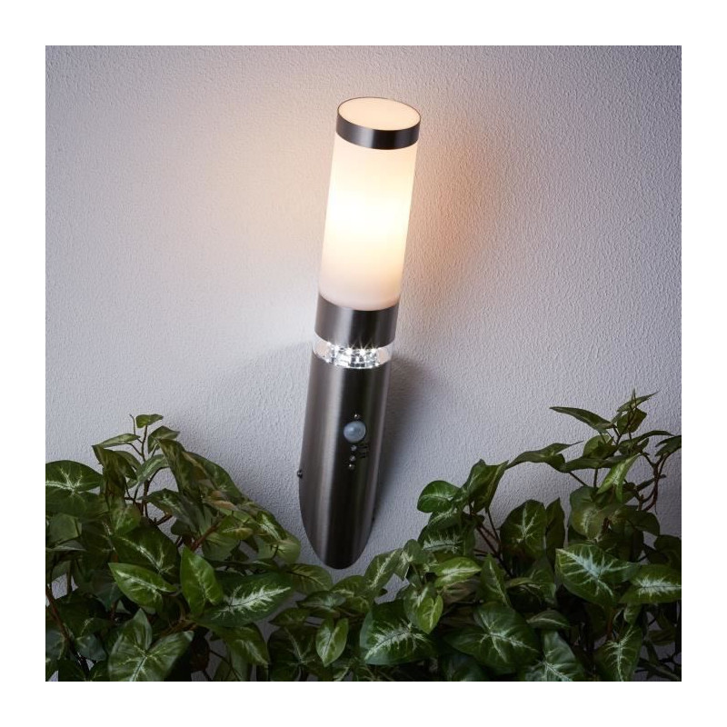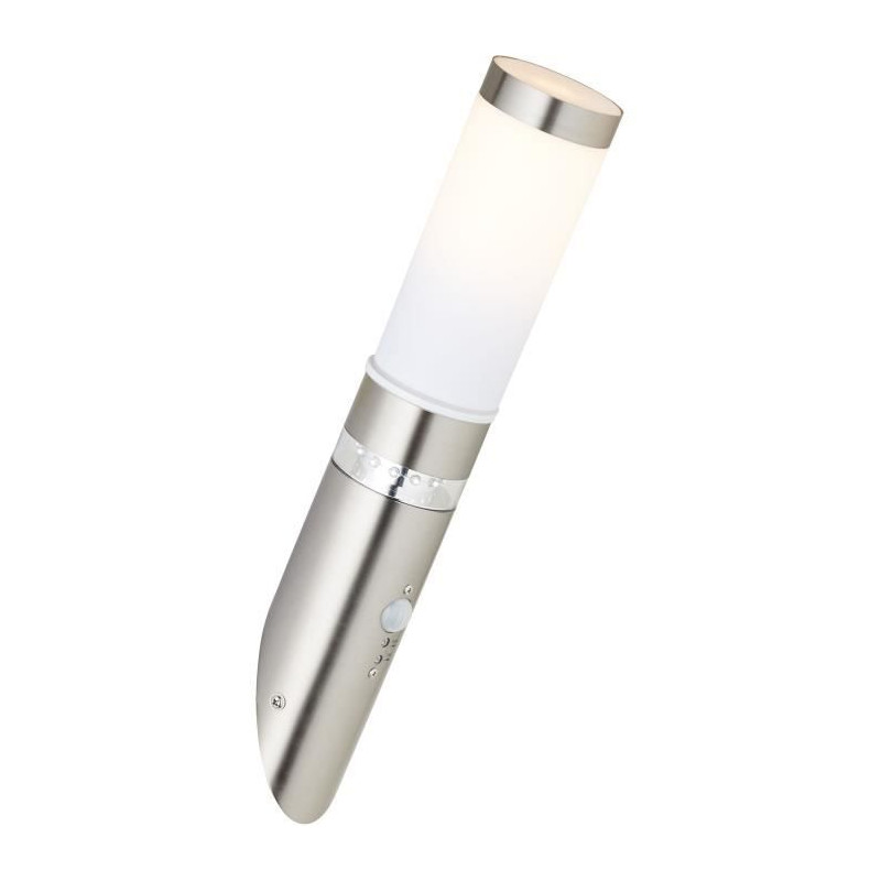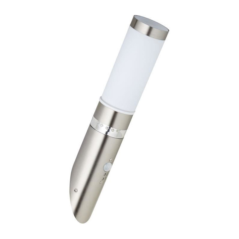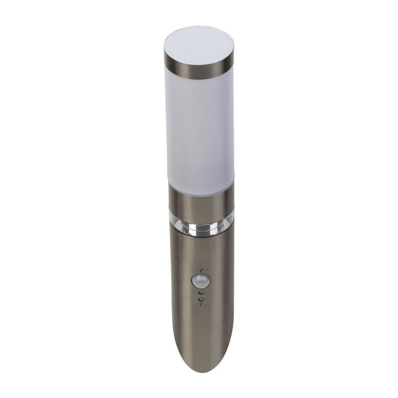 Lampe extérieure avec détecteur de mouvement BOLE LED coloris acier, matiere métal/plastique, IP44 50 Lumen/5000 Kelvin