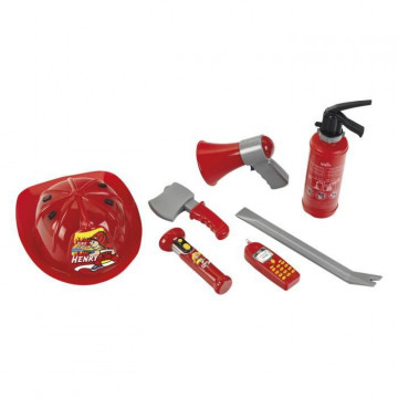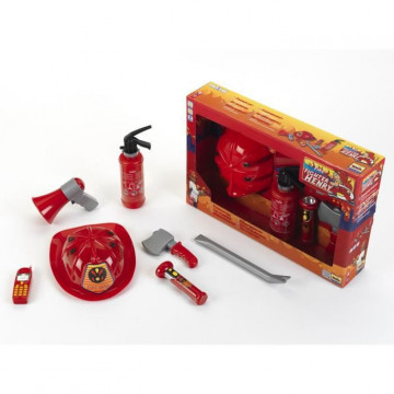 Toi aussi tu souhaites devenir un soldat du feu ? Voici la panoplie qu'il te faut ! Elle contient les éléments suivants : lampe torche avec fonction lumineuse, extincteur avec fonction projection d'eau, téléphone portable, pied de biche, marteau brise-glace, mégaphone et casque de pompier américain. Te voila paré pour combattre les flammes et sauver des vies ! A partir de 3 ans.