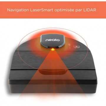 NEATO 945-0358 - Aspirateur robot D9 - Brosse combinée en spirale 28cm -Station de charge Slimline - Finition Noir métallique - Pile au lithium-ion autonomie jusqu'a 200min - Bac a poussieres 0,7L - Brosse latérale-Filtre haute performance E11 - Bluetooth- Mode Turbo, Eco - Cordon d'alimentation 2m - Horaire de nettoyage