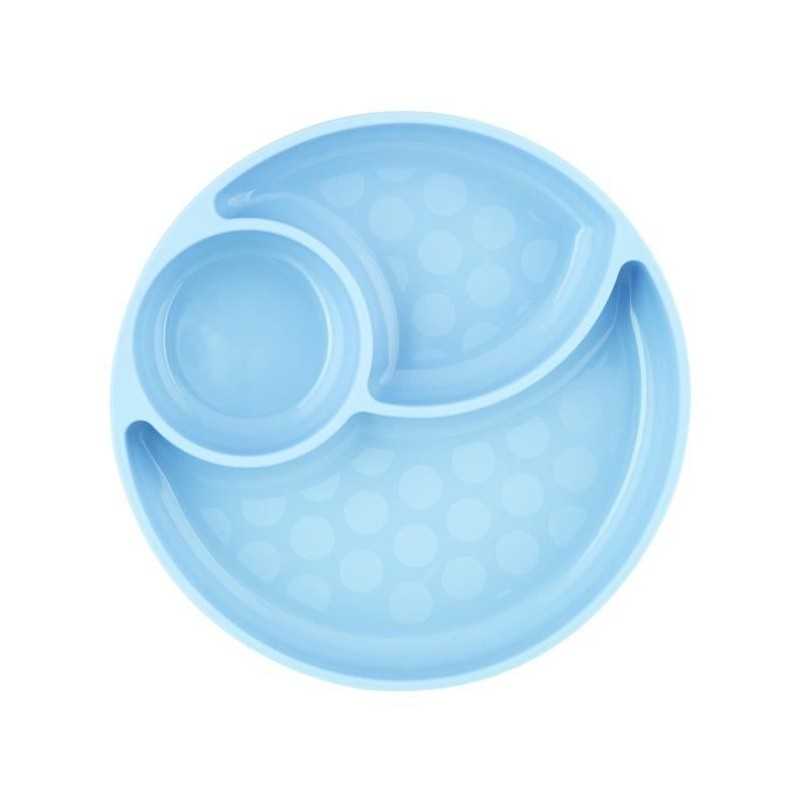 L'assiette qui accompagne l'enfant dans la découverte de nouvelles saveurs. 100% silicone souple, résistant et facile a nettoyer. Elle est munie d'une ventouse pour adhérer a la chaise haute ou a la table afin d'éviter les chutes et d'une languette qui permet aux parents de soulever l'assiette. Elle est pratique pour séparer les aliments grâce a ses 3 compartiments. Existe en rose et en bleu. Garantis 0% BPA (conf