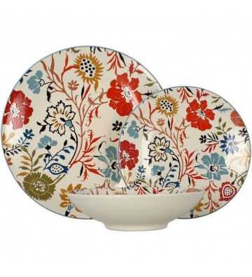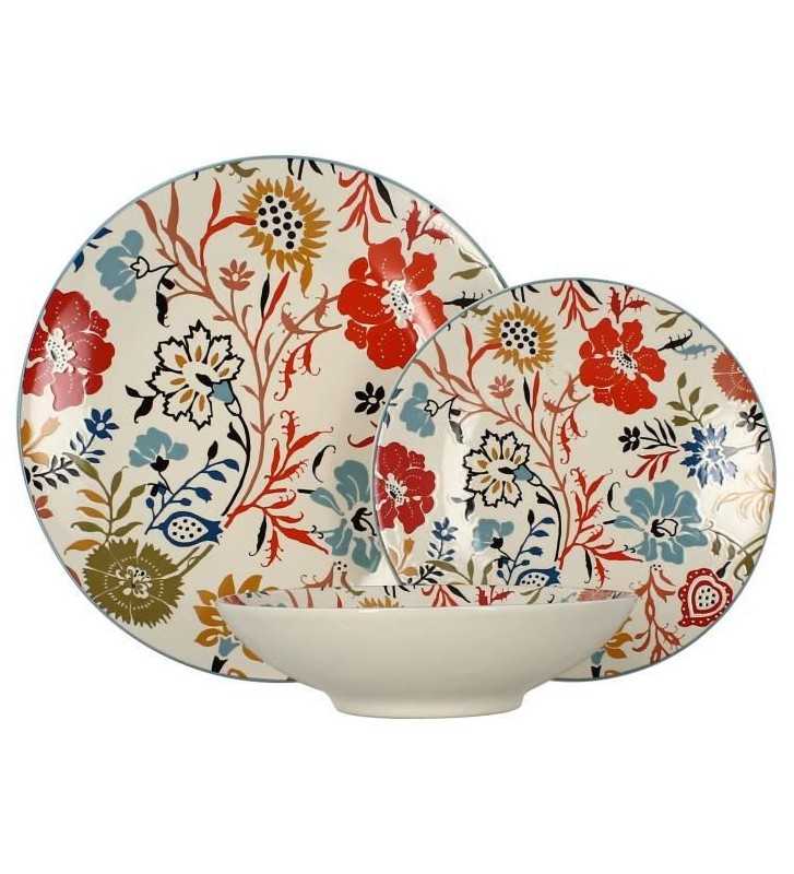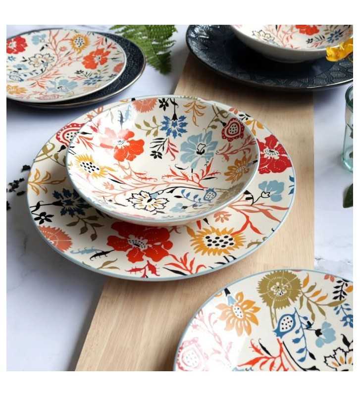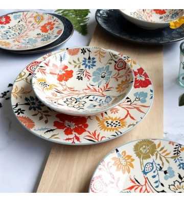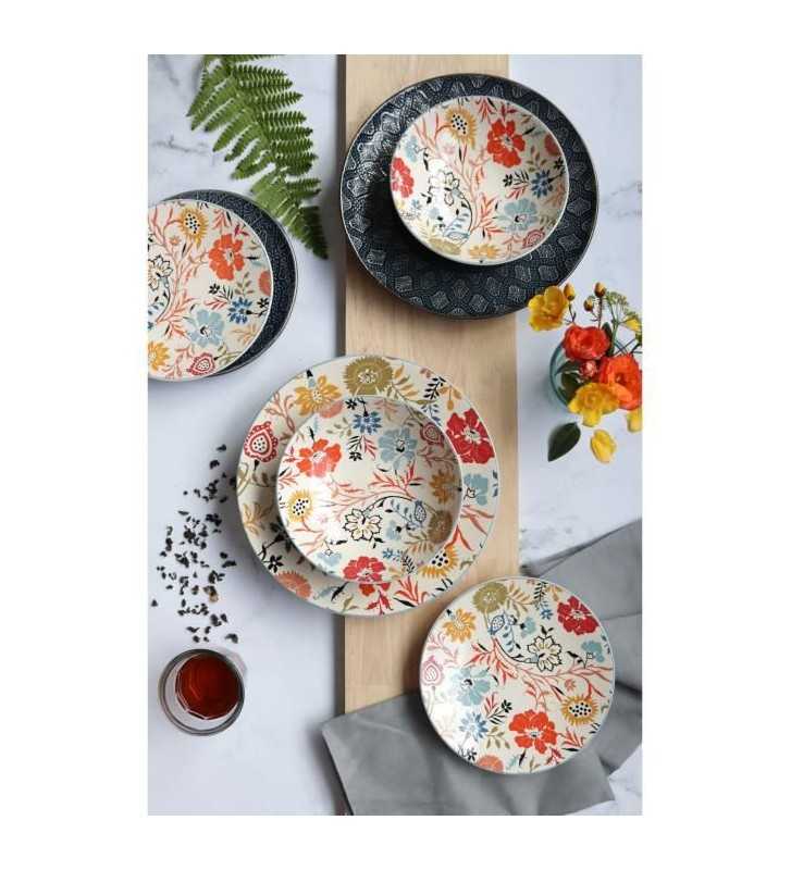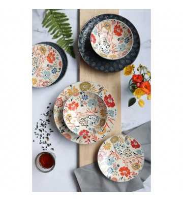 NOVASTYL - Jaipur - Lot de 6 Assiettes creuses - Ø19 cm - Gres - Décors floral en relief