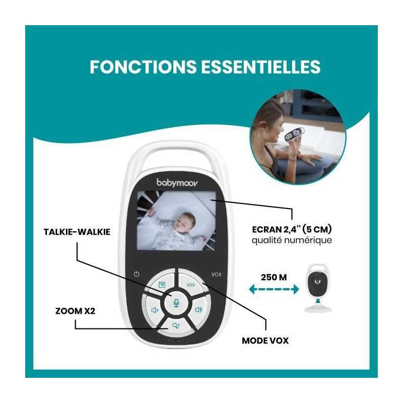 Babymoov Babyphone vidéo pour bébé YOO-See, Ecran 2,4'', Talkie-Walkie, Mode VOX, Portée 250m