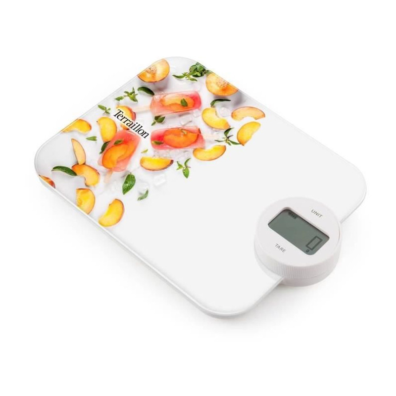Balance de cuisine TERRAILLON - DYNAMO PEACH - Capacité 5 Kg - Sans piles - Alimentation par Dynamo - Kit pailles Inox