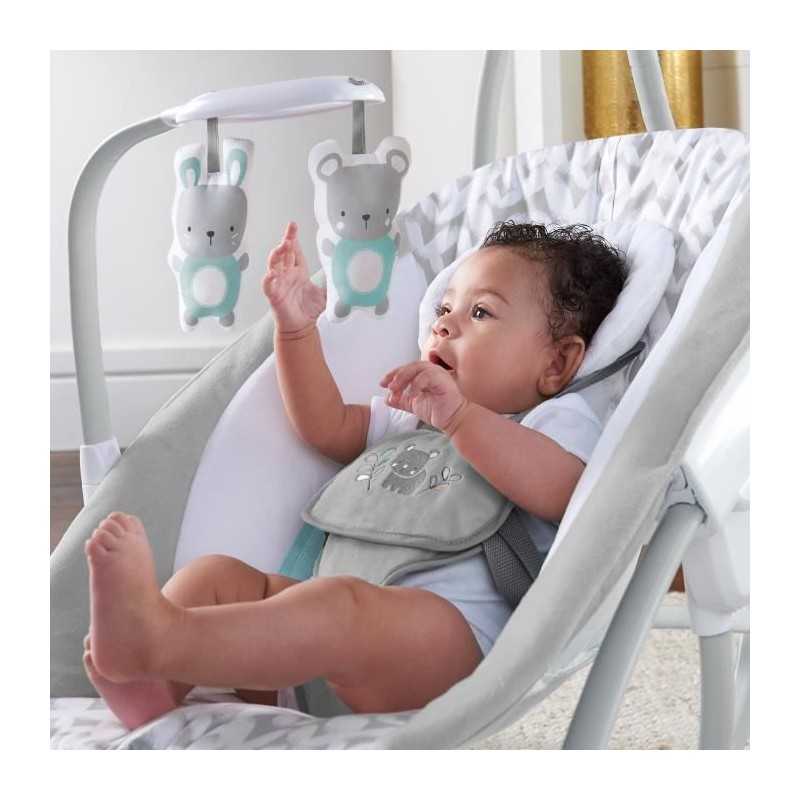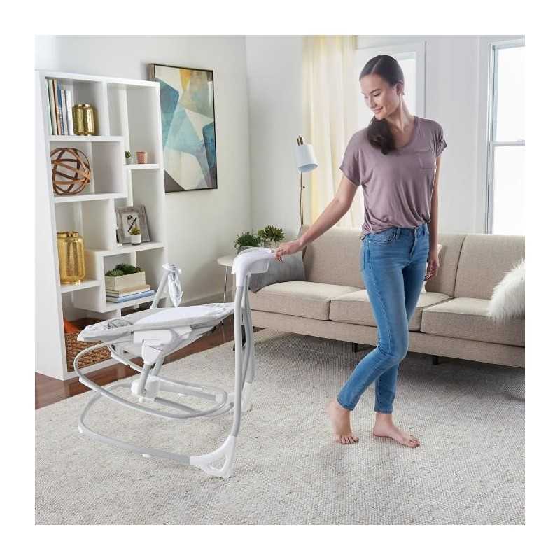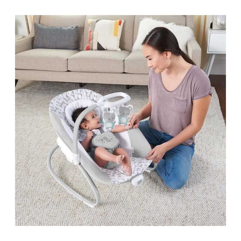 INGENUITY Transat balancelle évolutif 2 en 1 - raylan Balançoire pour bébé - Hamac pour bébé 2 en 1, gris, facile a transporter, SimpleComfort Deux éléments indispensables aux parents sont réunis dans ce design astucieux. Le siege souple de cette balançoire peut etre retiré pour se transformer en balançoire a bascule en un seul geste.