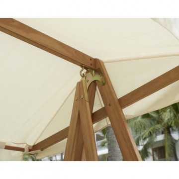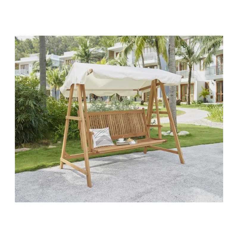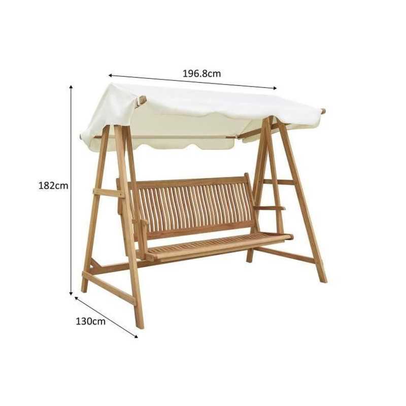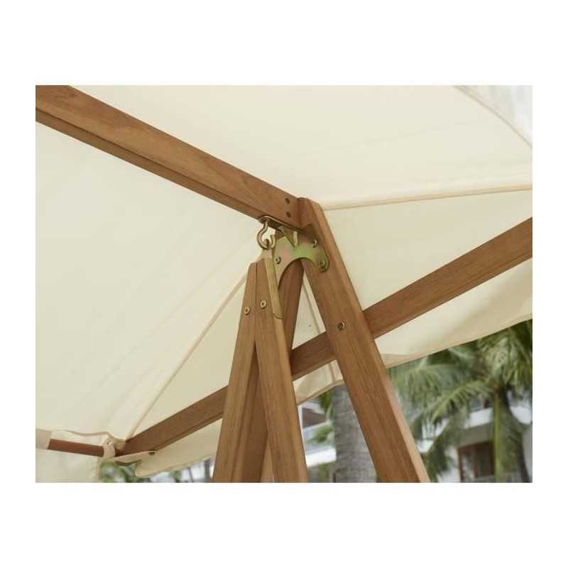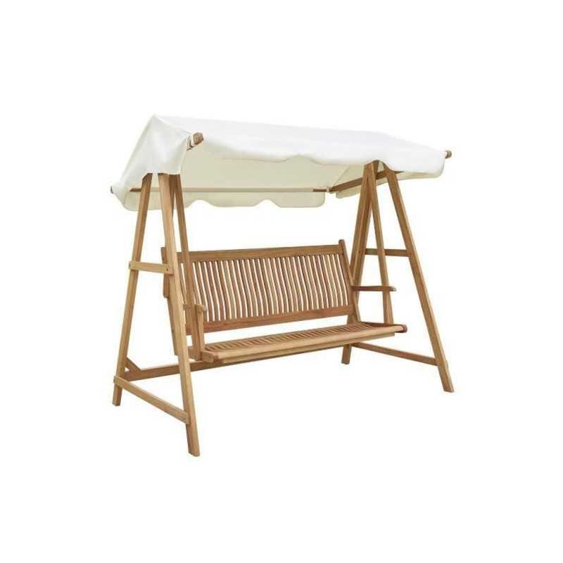 RONDA Balancelle de jardin en bois d'eucalyptus FSC 3 places - Avec toit de protection ombrage - Dimensions : 198,5x22,5x12cm - Coloris de la toile : Beige