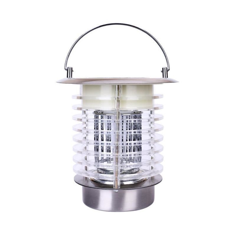 Lampe Led en acier - Anti moustique et éclairante - Alimentation : batterie - Dimensions : 18x18x18cm - Couleur de l'ampoule : blanc froid.