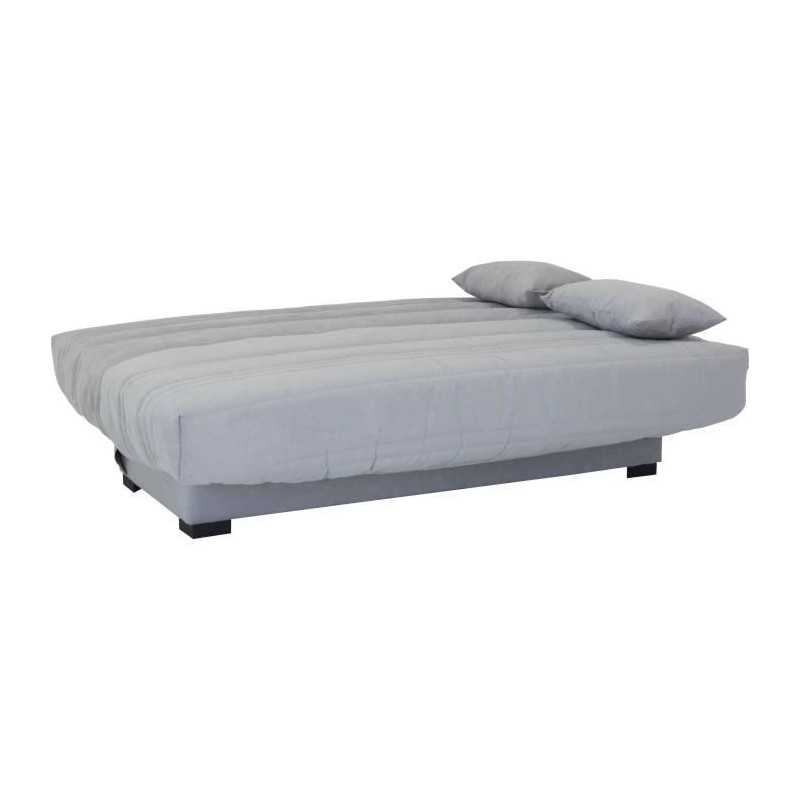 Ce canapé 3 places de dimensions 199 x 96 x 103 cm et son couchage de 130 x 190 cm est a la fois classique mais chic, qui rendra votre intérieur chaleureux. Il y a également deux coussins en guise d'accoudoirs avec cette banquette. La grande épaisseur du matelas de 17 cm et sa densité de 35 kg/m3 Haute Résilience lui confere un tres bon confort pour un couchage quotidien.
