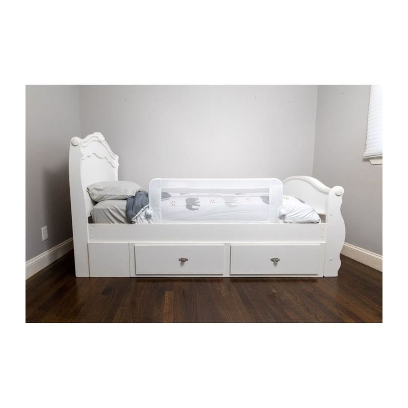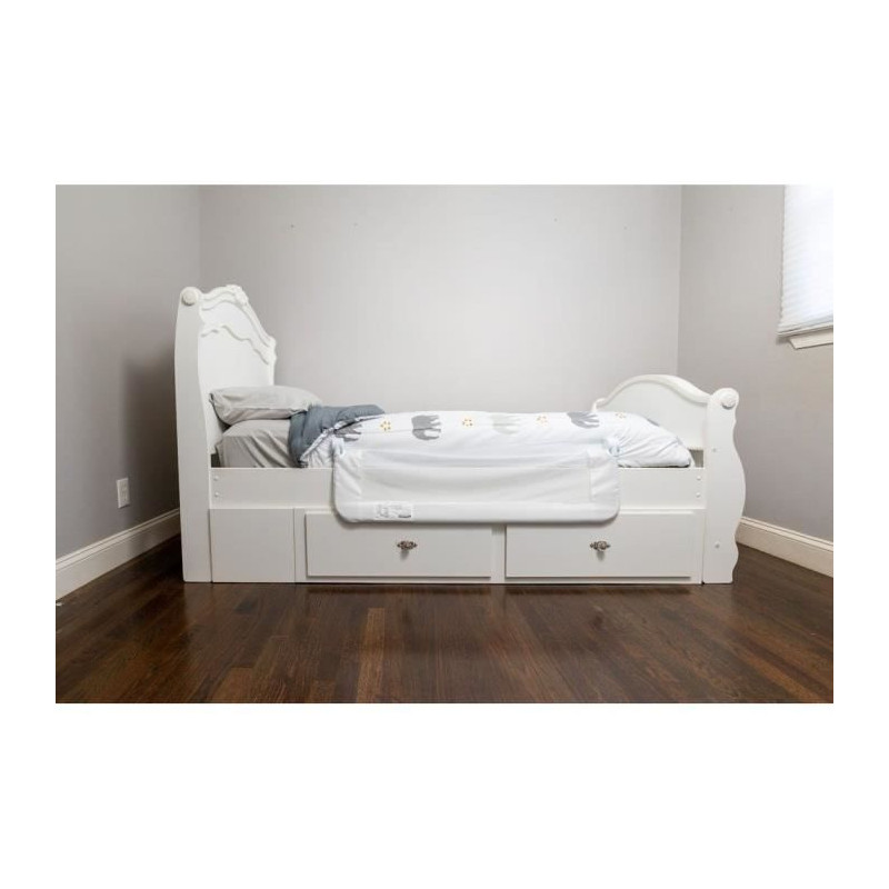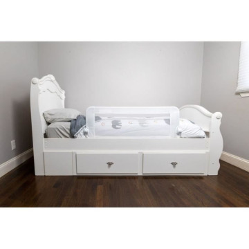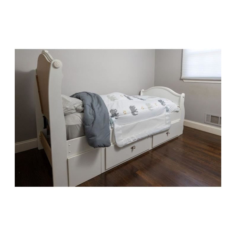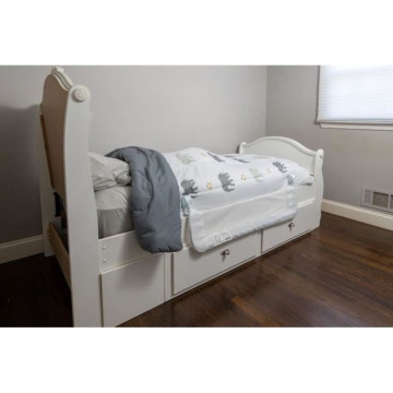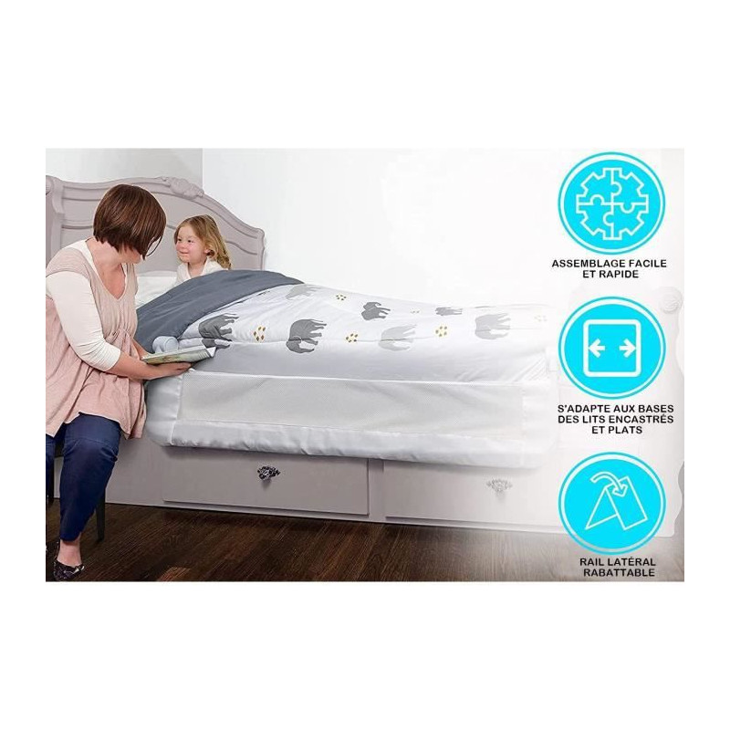 La barriere de lit Maggie un accessoire de sécurité fiable qui peut aider les enfants a passer du berceau au lit en confiance et sécurité. Avec une largeur extra large de 110 cm et une hauteur extra haute de 50 cm, cette barriere de lit convient aux lits plats et encastrés et s'adapte aux matelas jusqu'a la taille king-size. Avec une housse amovible et lavable. Cette barriere de lit convient aux matelas encastrés.