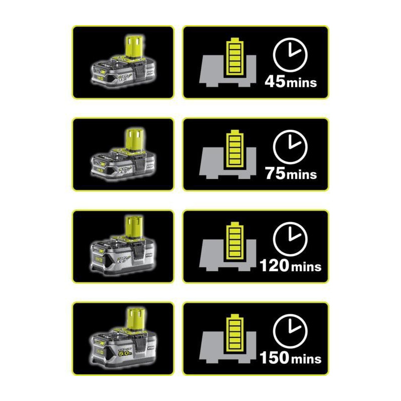 Pack batterie RYOBI 18V OnePlus 1.5Ah LithiumPlus et chargeur rapide 2.0Ah RC18120-115