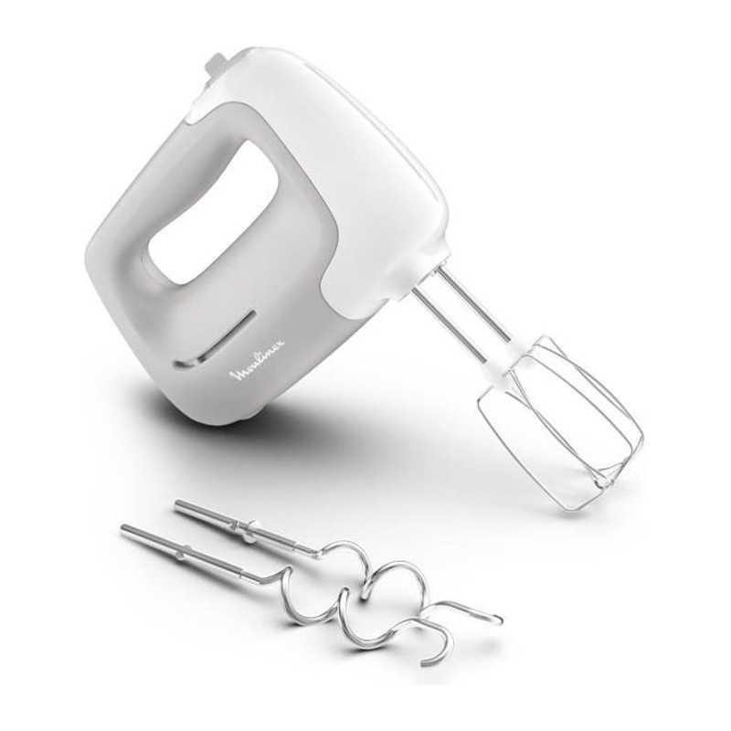 MOULINEX Batteur électrique Prep'Mix Pétrisseurs inox, 5 vitesses, 2 fouets, 2 crochets, Ergonomique, 450W HM450B10