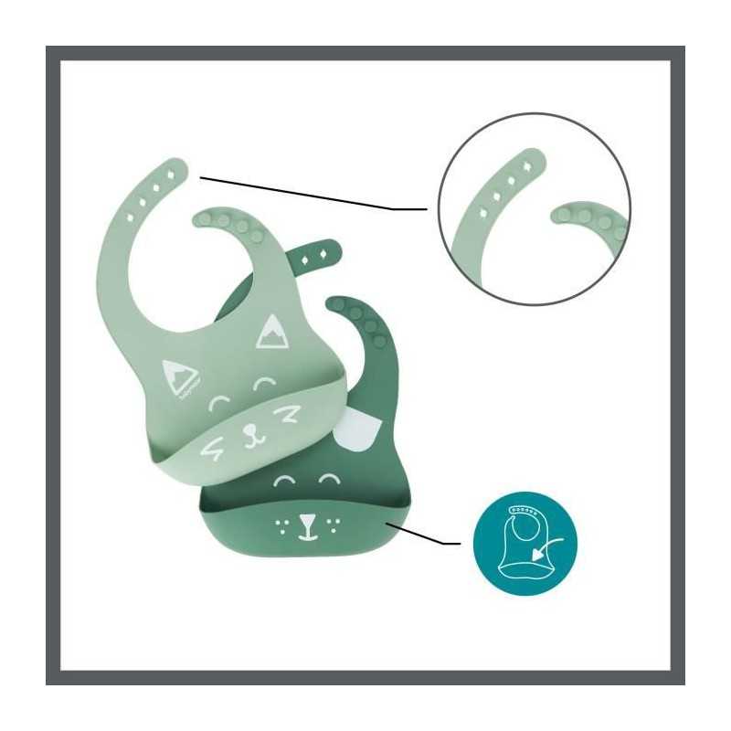 Babymoov Lot de 2 bavoirs en silicone BIB'ISY, avec poche ventrale