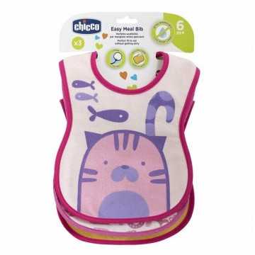 CHICCO Lot de 3 bavoirs décorés chat rose ou lot de 3 renard turquoise 6m+