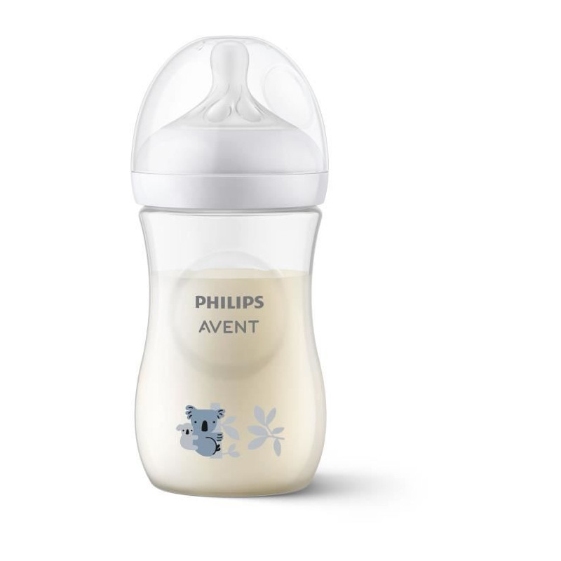 A l'unité - Biberon Natural 3,0 - 260 ml - koala - tétine imitant la forme du sein, elle laisse le lait s'écouler lorsque bébé boit activement -la conception anti-fuite de la tétine permet d'éviter les écoulements et la perte de lait - compatible avec toute la gamme Avent - conçu pour diminuer les coliques.