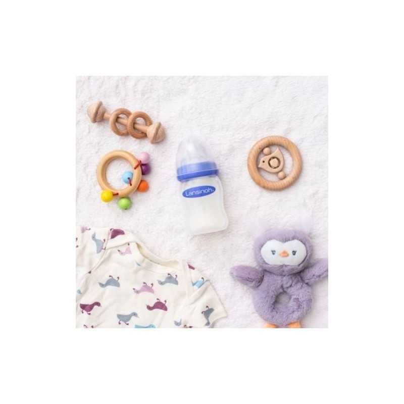 Le biberon Lansinoh et sa tétine péristaltique NaturalWave sont spécialement conçus pour les bébés nourris au sein. Il est recommandé d'attendre 6 a 8 semaines pour bien établir un modele d'allaitement maternel avant d'introduire le biberon afin de limiter le risque de confusion sein/tétine. Lot 2x160ml. Sans BPA/BPS.