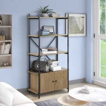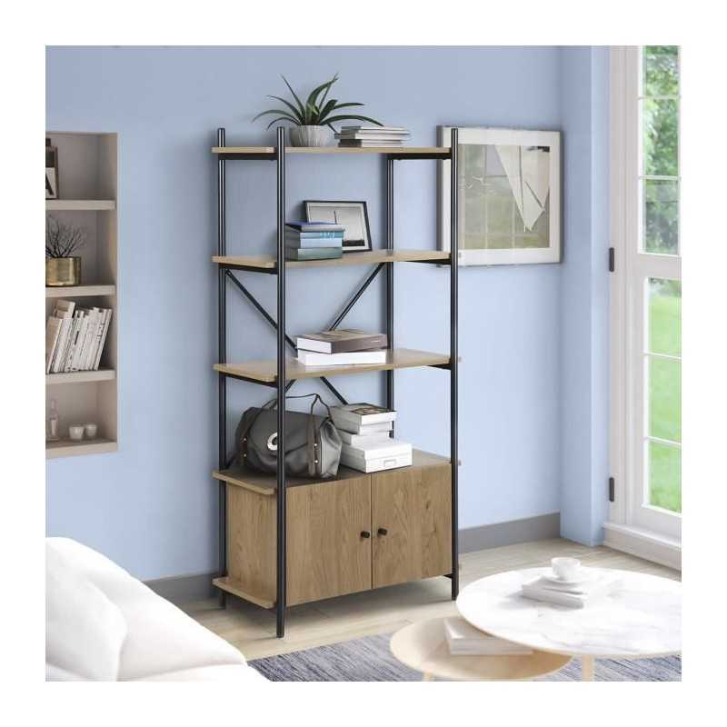 Bibliotheque Décor chene et vert - Pieds en bois massif -...
