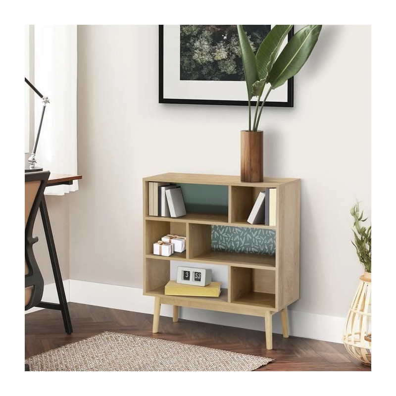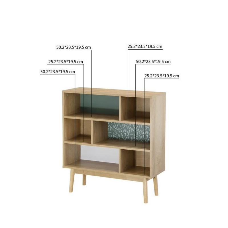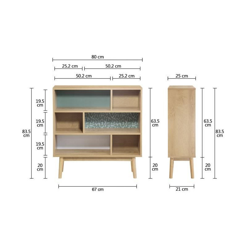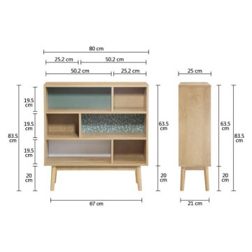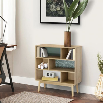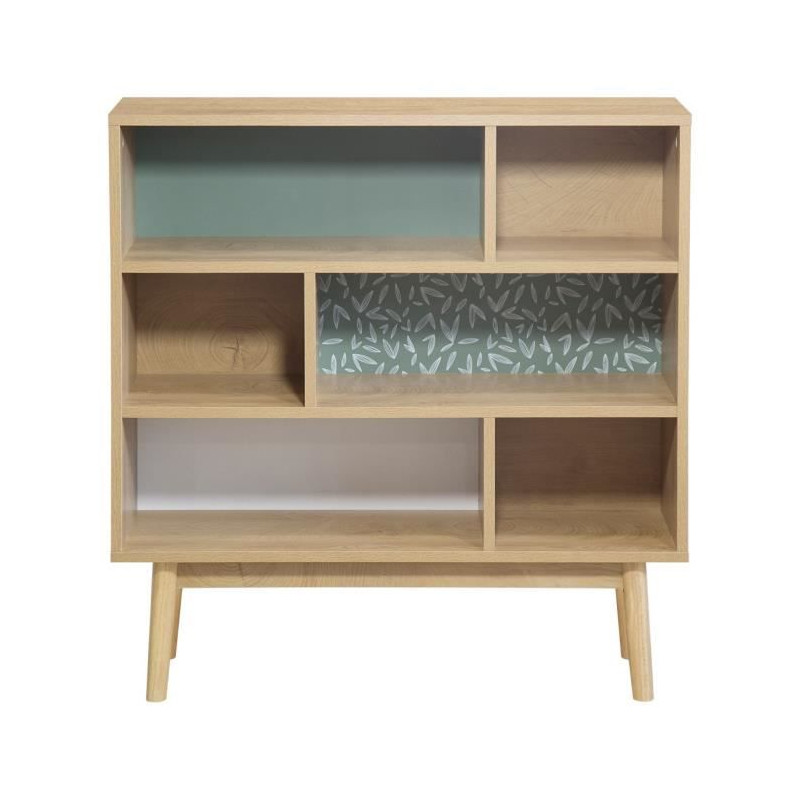 Bibliotheque Décor chene et vert - Pieds en bois massif - L 80 x P 25 x H 85 cm - GARDENIA