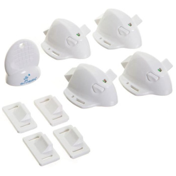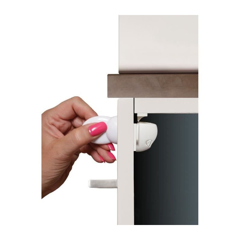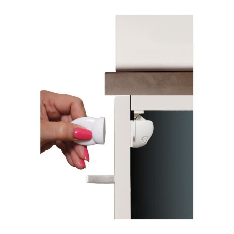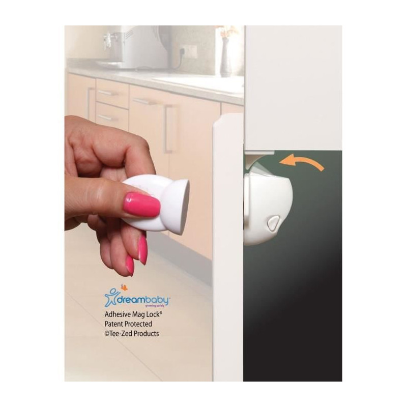 Dreambaby Bloque placard/Bloque tiroir magnétiques est caché dans l'armoire, loin des yeux, loin de l'esprit. On ne peut pas ouvrir qu'avec l'utilisation de la puissante clé magnétique. Ce kit contient quatre Bloque placard/Bloque tiroir et une clé.