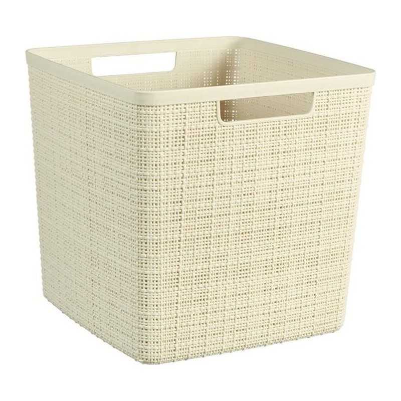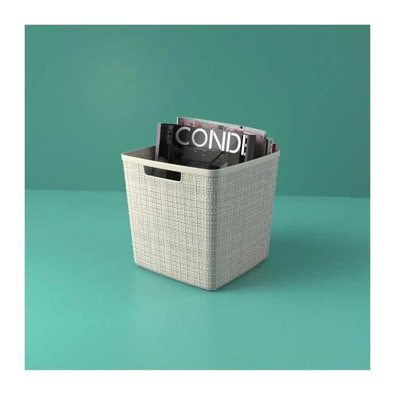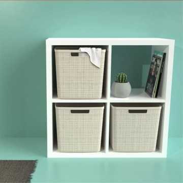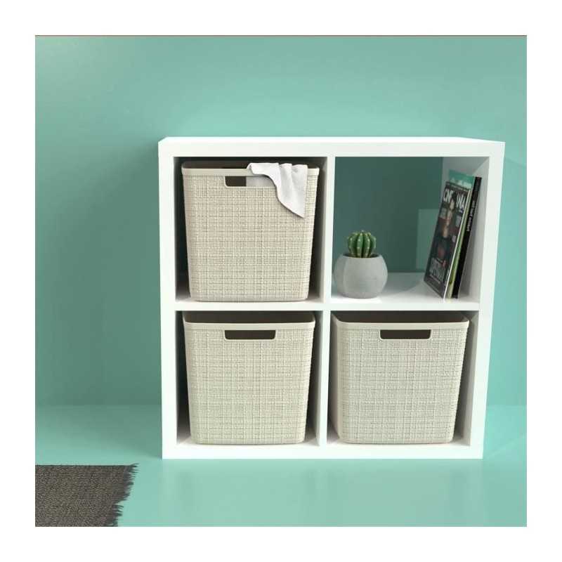 CURVER Paniere Jute cube - Élégante et multifonctionnelle, elle apporte l'aspect chaud et naturel de la fibre brute qui s'agence parfaitement a n'importe quelle maison - Robuste et polyvalente - Facile a transporter - Empilable - Fait a partir de plastique recyclé - Fabrication UE - Capacité : 17 L - Beige.