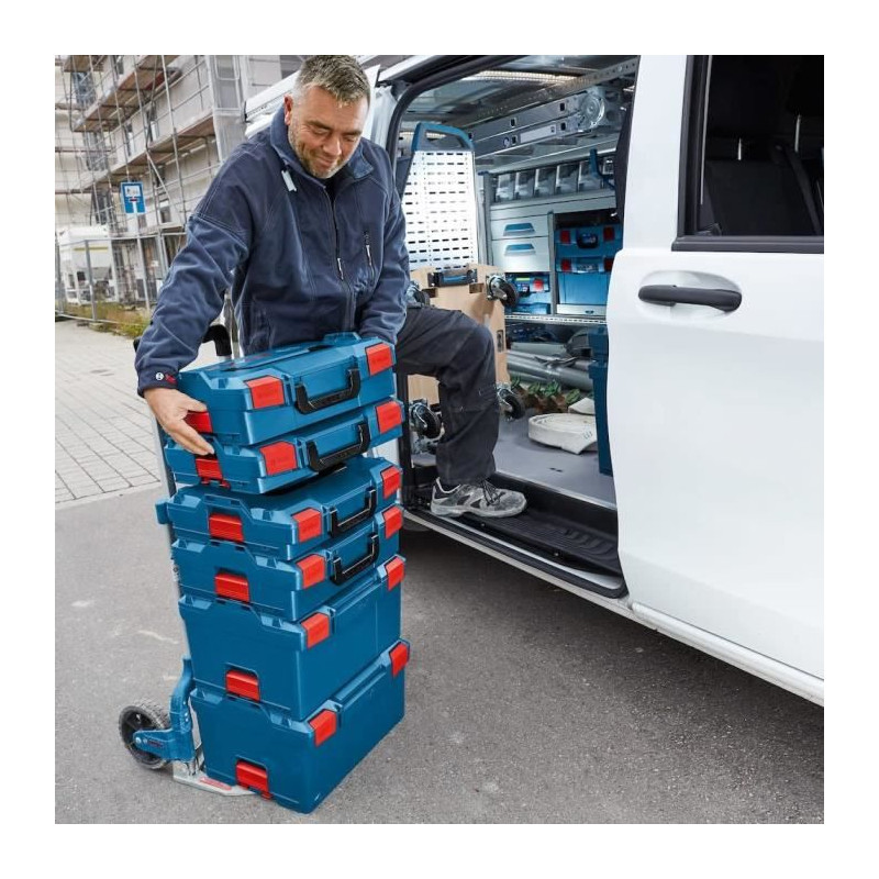 Une solution de mobilité Bosch améliorant le rangement et le transportAvantages de l'utilisateurOuverture facile des coffrets empilés et mécanisme de clipsage L-BOXX amélioré pour un maniement plus facileGrande souplesse d'utilisation grâce a la compatibilité totale avec tous les coffrets L-BOXX et calages de meme qu'avec le systeme d'aménagement de véhicules utilitaires SortimoGrande robustesse du coffret L-BOXX