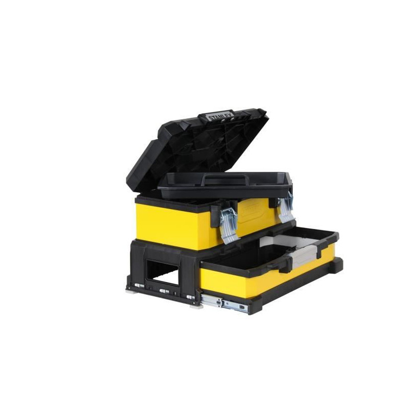 Boite a outils a tiroir jaune 51cm - Marque Stanley - Bi matiere : métal galvanisé et polypropylene - Poignée télescopique ajustable - 4 tiroirs profonds ajustables permettant le stockage d'outils énergisés ou de petits outils