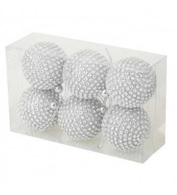 Set de 6 boules de Noël rondes décorées - Dimensions : Ø 6 cm - Argent