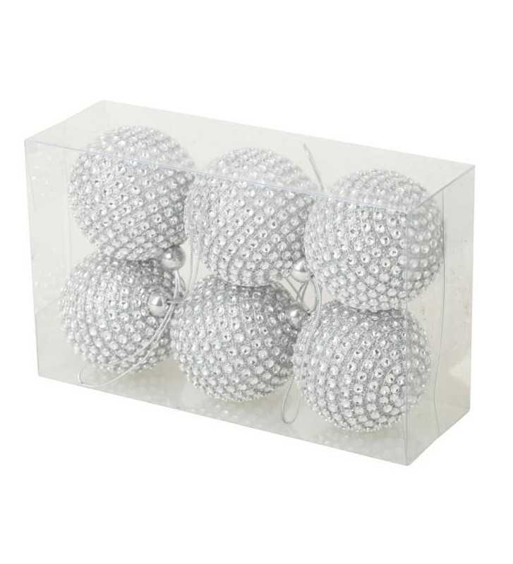 Lot de 6 Boules de Noël en Plastique Argenté 6 cm