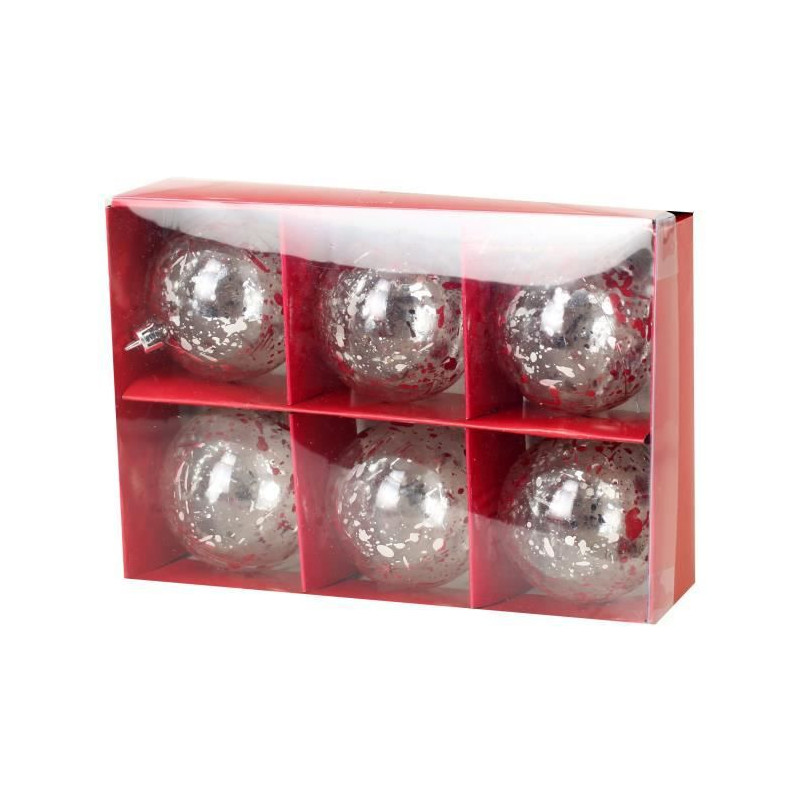Lot de 6 Boules de Noël en Plastique Argenté 6 cm