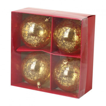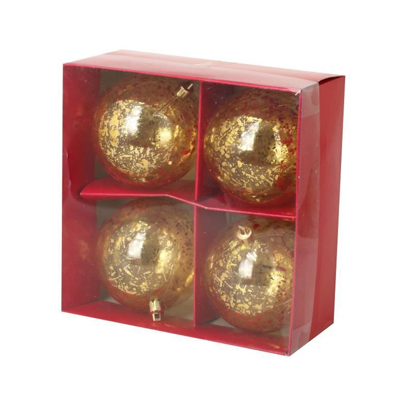 Lot de 4 Boules de Noël en Plastique Doré 8 cm