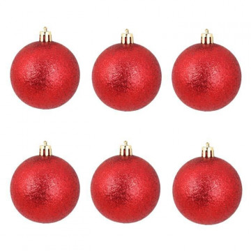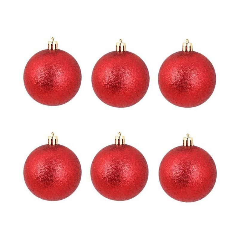 Set de 6 boules pailletées - Ø6 cm - Rouge
