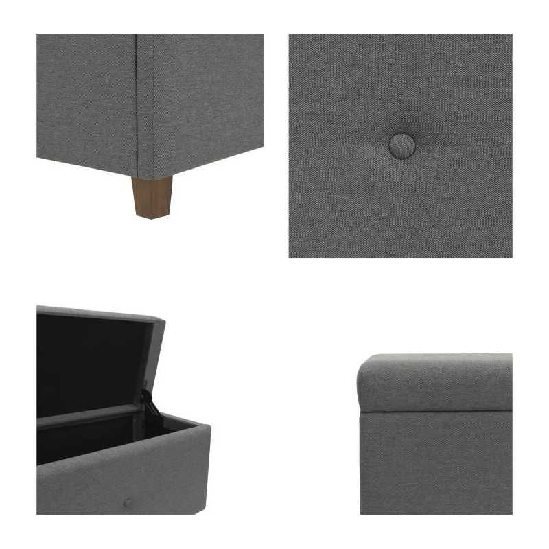 Banc coffre BOX - Tissu imitation lin - Gris foncé - Bout de lit - L 160 cm
