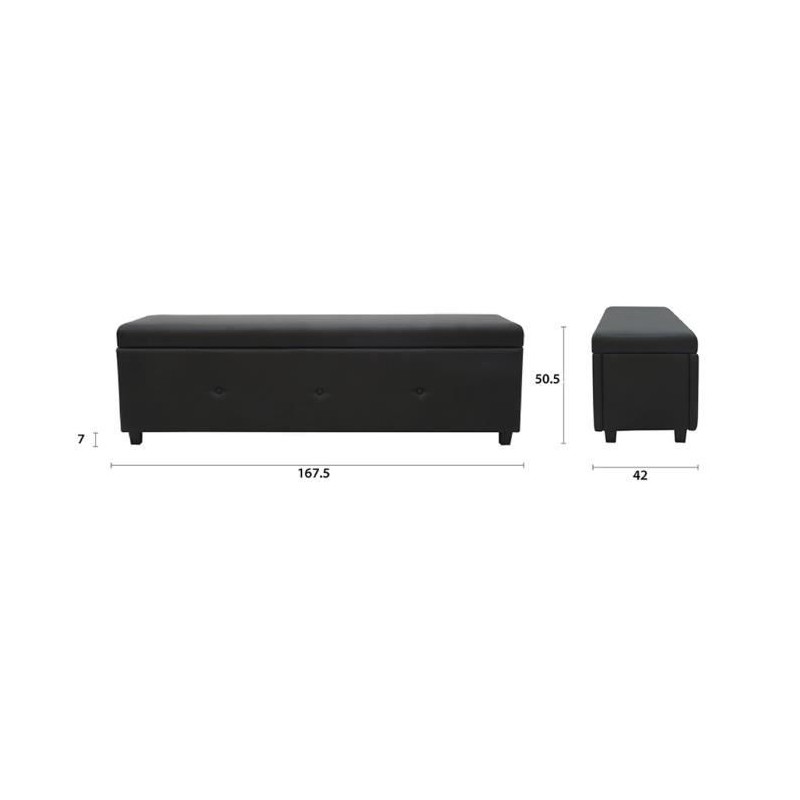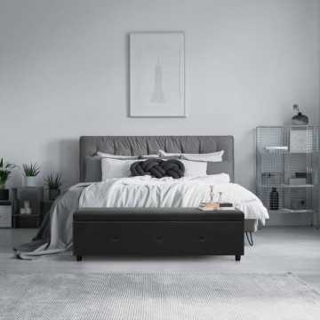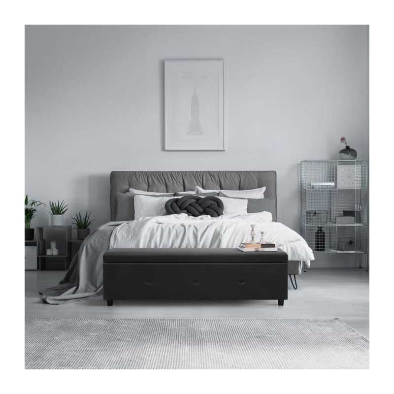 Banc coffre BOX - Tissu imitation lin - Gris foncé - Bout...