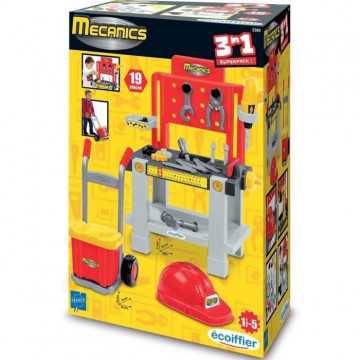 Un ensemble de 3 jouets pour former la panoplie complete du bricoleur. Il contient un établi avec perceuse a meches, clé, pince, marteau, tournevis, metre, un diable avec sa caisse de rangement et un casque.19 pieces. Conseillé des 18 mois. Origine France Garantie